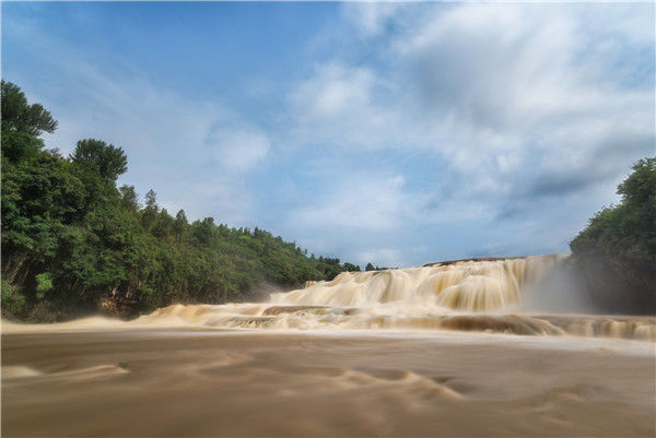 2019年6月8日,貴州安順,黃果樹瀑布進(jìn)入豐水期。圖為黃果樹大瀑布上游的陡坡塘瀑布。袁博 /視覺中國