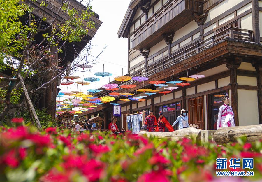 6月13日,在長春市世茂蓮花山小鎮(zhèn)寬厚里商街,表演者身穿漢服、古裝進行表演展示。當日是“文化和自然遺產(chǎn)日”。吉林長春首屆蓮花山消夏生活節(jié)在世茂蓮花山小鎮(zhèn)舉行?;顒訉⒎沁z展示與假日消暑休閑相結合,讓游人在“古色古香”的油紙傘巷中品傳統(tǒng)文化魅力,享夏日休閑愜意。新華社記者 許暢 攝