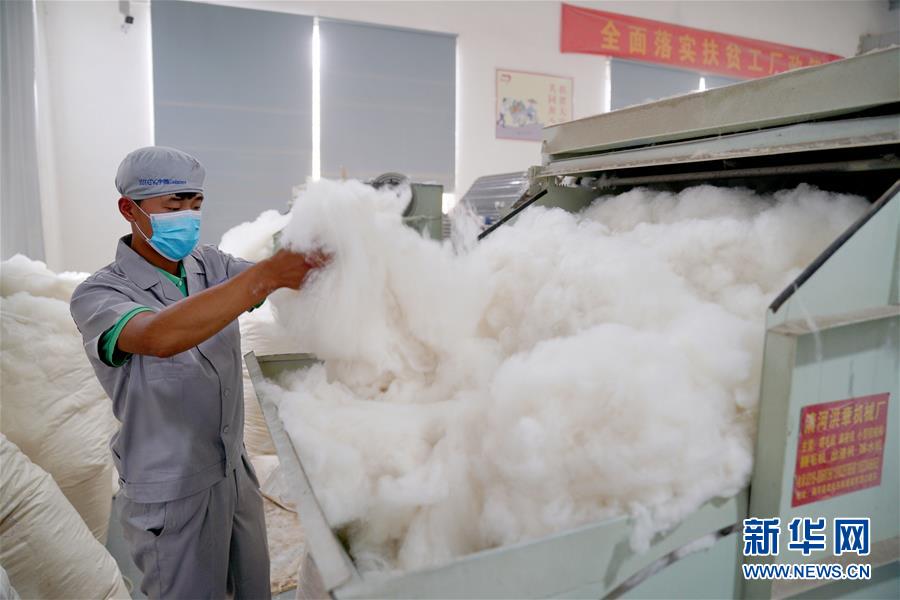 6月16日,工人在清河縣葛仙莊鎮(zhèn)一處“扶貧微工廠”內(nèi)分梳羊絨。新華社記者 牟宇 攝