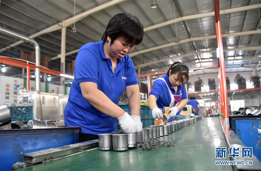 6月15日,河北省邢臺(tái)市威縣一家汽車配件生產(chǎn)企業(yè)工人在生產(chǎn)線上工作。新華社記者 朱旭東 攝