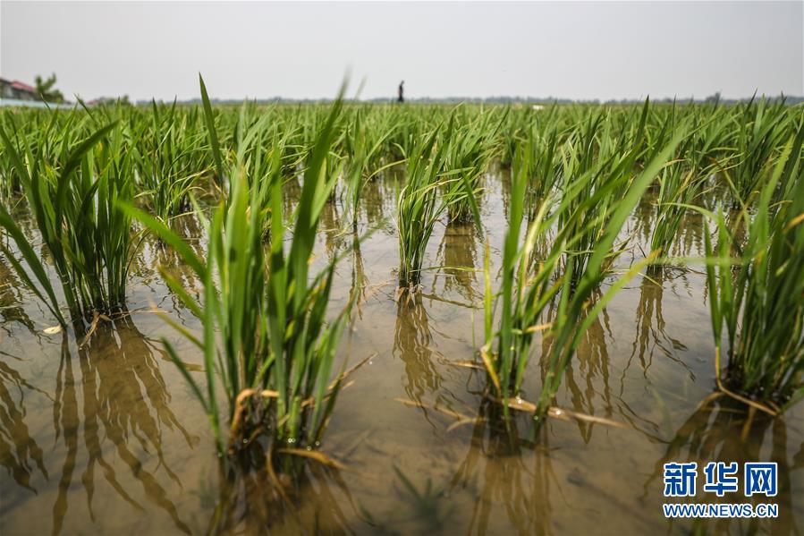 6月17日,農(nóng)民在盤錦市盤山縣太平街道張家村的稻田間查看水稻秧苗生長情況。新華社記者 潘昱龍 攝