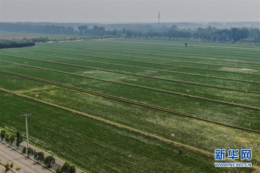 這是6月17日拍攝的盤錦市盤山縣太平街道張家村的水稻田(無人機(jī)照片)。新華社記者 潘昱龍 攝