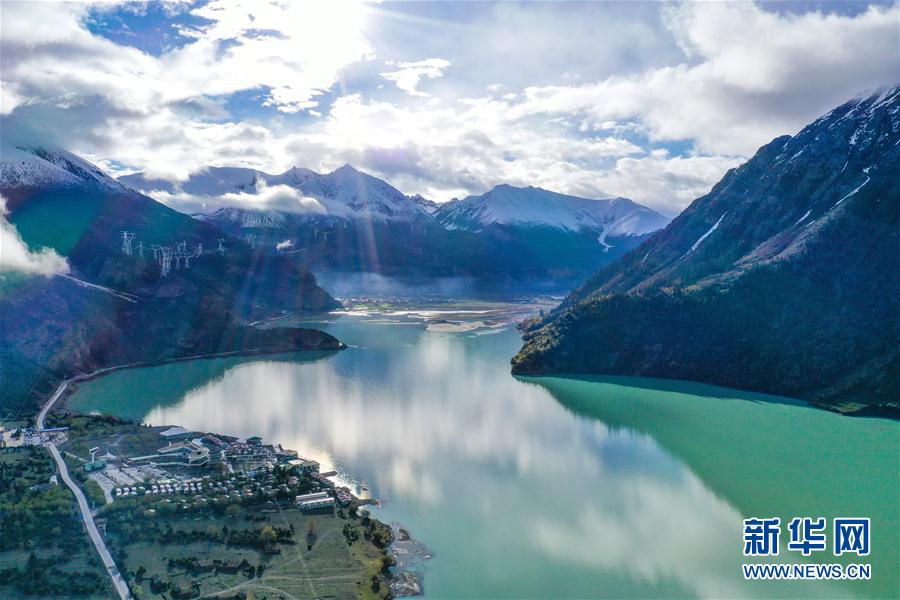 位于昌都市八宿縣境內(nèi)318國道旁的然烏湖(6月7日攝,無人機(jī)照片)。新華社記者 田金文 攝