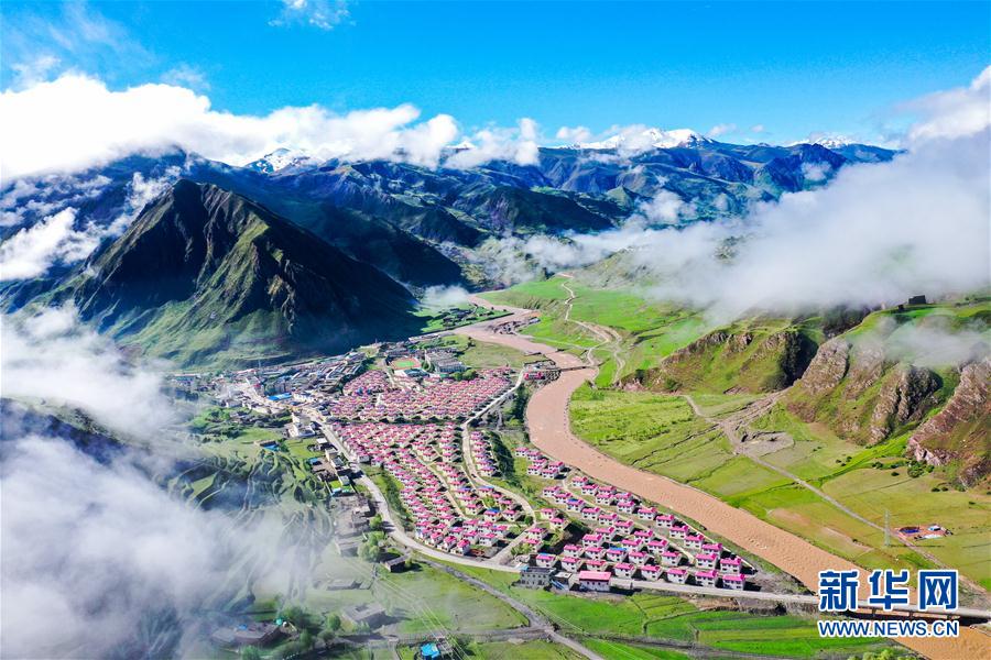位于丁青縣嘎曲河畔的尺牘鎮(zhèn)易地扶貧搬遷點(6月14日攝,無人機(jī)照片)。新華社記者 白少波 攝