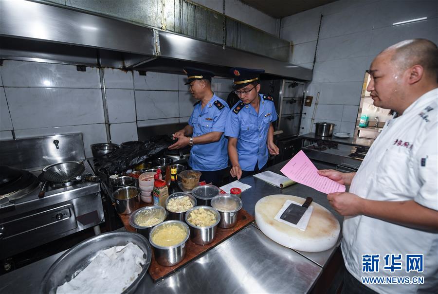 6月17日,市場監(jiān)管執(zhí)法人員在東林鎮(zhèn)一家農(nóng)家樂內(nèi)開展專項(xiàng)執(zhí)法行動,檢查是否存在非法經(jīng)營和加工野生動物的情況。新華社記者 徐昱 攝
