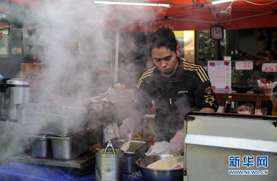 6月19日,一名美食攤主在澳大利亞悉尼查茨伍德鎮(zhèn)忙碌。華社記者白雪飛攝
