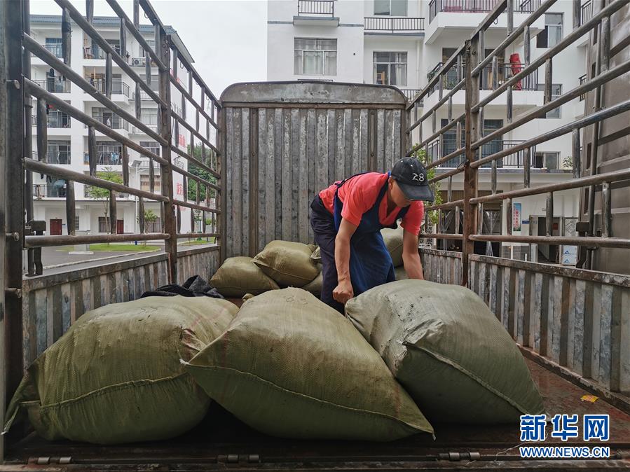 6月18日,在湖南省張家界市桑植縣,康華粽葉扶貧工廠的工人在搬運粽葉。新華社記者阮周圍攝