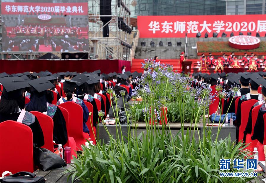 6月23日,在華東師范大學閔行校區(qū)的畢業(yè)典禮上,優(yōu)秀畢業(yè)生代表接受表彰。當日,華東師范大學舉行2020屆畢業(yè)典禮。由于疫情防控需要,今年的典禮在兩個校區(qū)分別舉辦,并全程在線直播。約7700名華東師范大學2020屆畢業(yè)生通過現場或“云端”的方式參加畢業(yè)典禮。新華社記者劉穎攝