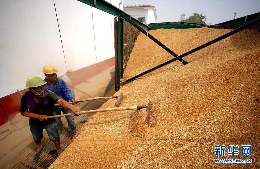 6月23日,在河北柏鄉(xiāng)國家糧食儲備庫,工作人員將小麥入庫。麥收過后,河北柏鄉(xiāng)國家糧食儲備庫積極騰倉納糧,做好夏糧收儲入庫工作,確保農(nóng)民順利賣糧。新華社記者王曉攝
