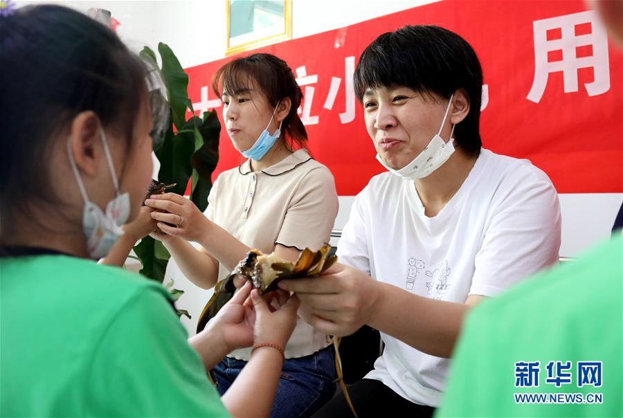 6月24日,在河北省廊坊市安次區(qū)西小街社區(qū)活動中心,孩子們將親手包制的粽子送給母親品嘗。端午節(jié)臨近,各地舉行包粽子、做香包、賽龍舟等豐富多彩的民俗文化活動,迎接傳統(tǒng)佳節(jié)的到來。新華社記者王曉攝