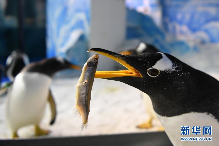 6月24日,哈爾濱極地館的企鵝在品嘗“魚粽”里的小魚。當(dāng)日,哈爾濱極地館的工作人員特地準(zhǔn)備了“魚粽”“肉粽”,讓生活在這里的極地動物也品嘗一下端午美食。新華社記者王建威攝
