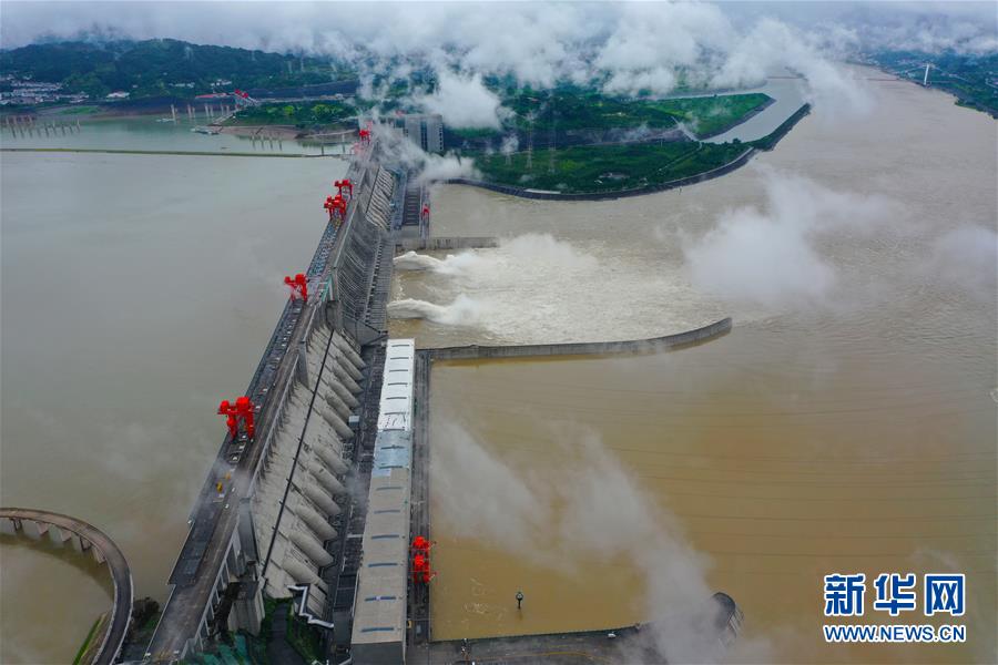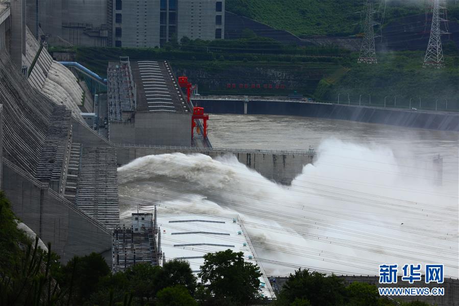6月29日,三峽樞紐開啟泄洪孔泄洪。受長江中上游強(qiáng)降雨影響,進(jìn)入三峽水庫的水量持續(xù)增多。為騰出一定庫容迎接近期可能到來的洪水,三峽樞紐于6月29日上午開啟兩個(gè)泄洪孔,加大下泄流量。這是三峽樞紐今年首次泄洪。28日14時(shí),三峽水庫入庫流量達(dá)4萬立方米/秒,是27日14時(shí)的兩倍。為應(yīng)對此輪來水,長江防總要求將三峽水庫下泄流量上調(diào)至日均3.5萬立方米/秒。新華社發(fā)(鄭家裕攝)