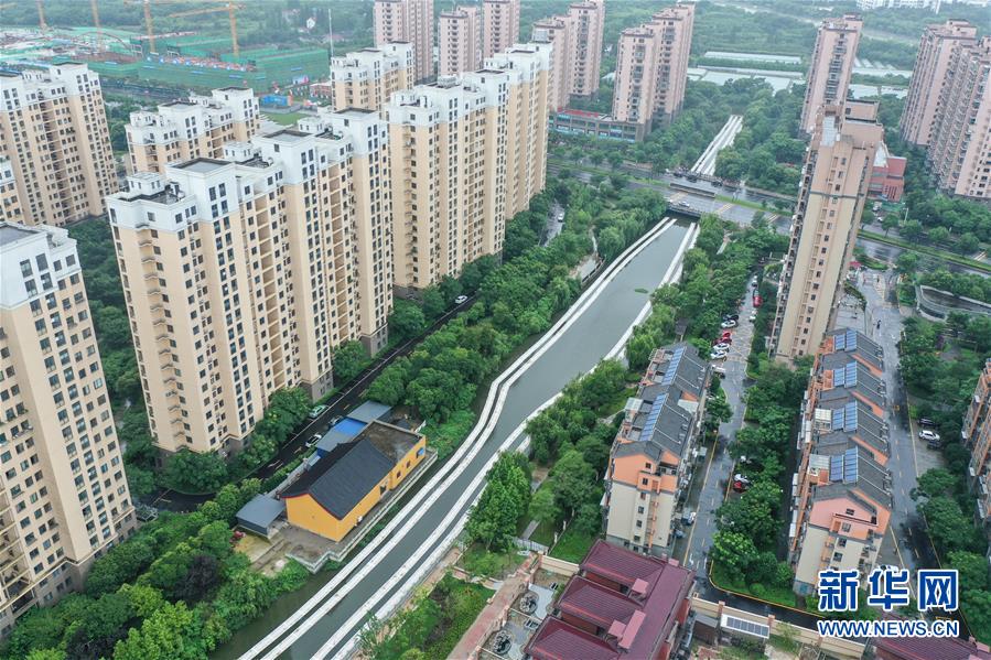 6月29日在吳興區(qū)湖東街道拍攝的“水上稻田”(無人機照片)。今年以來,浙江湖州吳興區(qū)湖東街道開始在轄區(qū)河道大規(guī)模推廣“水上稻田”新型農(nóng)業(yè)項目,利用浮島進(jìn)行特種水稻種植,既能凈化水體,又能產(chǎn)出生態(tài)稻谷?!八系咎铩鳖A(yù)計在11月實現(xiàn)收割。新華社記者翁忻旸攝