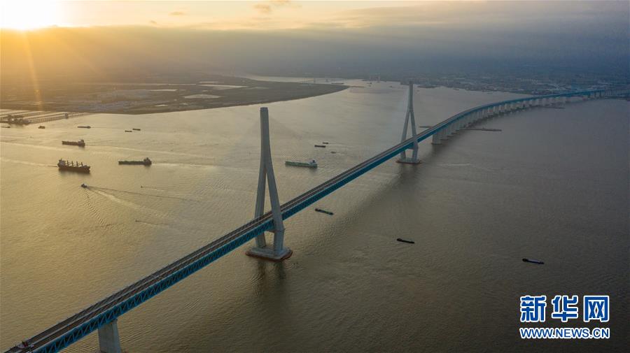滬蘇通長江公鐵大橋(6月29日攝,無人機照片)。即將于7月1日通車的滬蘇通長江公鐵大橋北起江蘇南通,南至江蘇張家港,公鐵合建跨江正橋全長5827米,為集合高速公路、客貨混線鐵路、高速鐵路的“三合一”過江通道,建成通車后將有效促進長三角城市群跨江融合、協(xié)同發(fā)展。新華社記者李博攝