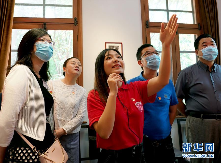 6月30日,復(fù)旦大學《共產(chǎn)黨宣言》展示館黨員志愿服務(wù)隊隊員、復(fù)旦大學馬克思主義學院博士生陸婷婷(右一)在為觀眾講解。陳望道是《共產(chǎn)黨宣言》首個中文全譯本的翻譯者,也是新中國成立后復(fù)旦大學的第一任校長。2018年5月,復(fù)旦大學將陳望道故居改造為《共產(chǎn)黨宣言》展示館,該校一批青年教師和學生組建黨員志愿服務(wù)隊,面向廣大師生和社會各界開展宣講活動。復(fù)旦大學《共產(chǎn)黨宣言》展示館黨員志愿服務(wù)隊名為“星火”,由該校青年教師、博士生、碩士生黨員組成。兩年多時間里,志愿服務(wù)隊共服務(wù)學校及社會各界參觀者近5萬人次,年均講解700多場。新華社記者劉穎攝