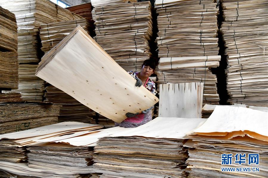 6月30日,在費(fèi)縣坤林木業(yè)有限公司,工人在整理板材原料。地處沂蒙革命老區(qū)的山東省臨沂市費(fèi)縣探沂鎮(zhèn)近年來圍繞鄉(xiāng)村振興戰(zhàn)略,謀劃“一鎮(zhèn)一業(yè)”,以木業(yè)產(chǎn)業(yè)為抓手,積極引導(dǎo)全鎮(zhèn)3136家木業(yè)企業(yè)進(jìn)行園區(qū)化、集約化、智能化發(fā)展,成為遠(yuǎn)近聞名的“木業(yè)特色小鎮(zhèn)”。2019年,該鎮(zhèn)規(guī)模以上工業(yè)總產(chǎn)值187億元,農(nóng)民人均純收入2萬元左右,木業(yè)產(chǎn)業(yè)有力助推當(dāng)?shù)氐泥l(xiāng)村振興。新華社記者郭緒雷攝