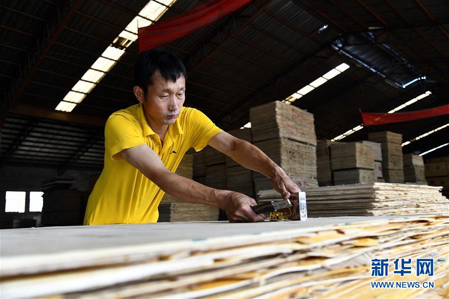 6月30日,在費縣坤林木業(yè)有限公司,工人在整理板材原料。地處沂蒙革命老區(qū)的山東省臨沂市費縣探沂鎮(zhèn)近年來圍繞鄉(xiāng)村振興戰(zhàn)略,謀劃“一鎮(zhèn)一業(yè)”,以木業(yè)產(chǎn)業(yè)為抓手,積極引導全鎮(zhèn)3136家木業(yè)企業(yè)進行園區(qū)化、集約化、智能化發(fā)展,成為遠近聞名的“木業(yè)特色小鎮(zhèn)”。2019年,該鎮(zhèn)規(guī)模以上工業(yè)總產(chǎn)值187億元,農民人均純收入2萬元左右,木業(yè)產(chǎn)業(yè)有力助推當?shù)氐泥l(xiāng)村振興。新華社記者郭緒雷攝