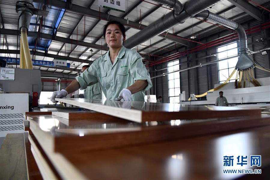 6月30日,在費縣云峰莫干山裝飾材料有限公司,工人在加工定制家具面板。地處沂蒙革命老區(qū)的山東省臨沂市費縣探沂鎮(zhèn)近年來圍繞鄉(xiāng)村振興戰(zhàn)略,謀劃“一鎮(zhèn)一業(yè)”,以木業(yè)產(chǎn)業(yè)為抓手,積極引導全鎮(zhèn)3136家木業(yè)企業(yè)進行園區(qū)化、集約化、智能化發(fā)展,成為遠近聞名的“木業(yè)特色小鎮(zhèn)”。2019年,該鎮(zhèn)規(guī)模以上工業(yè)總產(chǎn)值187億元,農民人均純收入2萬元左右,木業(yè)產(chǎn)業(yè)有力助推當?shù)氐泥l(xiāng)村振興。新華社記者郭緒雷攝