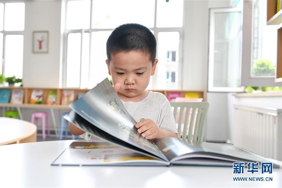 7月2日,在長春市少年兒童圖書館平陽社區(qū)繪本主題分館,小朋友閱讀繪本。長春市少年兒童圖書館平陽社區(qū)繪本主題分館位于南關(guān)區(qū)曙光街道平陽社區(qū),目前藏書約5000冊。該館于6月30日揭牌開館,由長春市少年兒童圖書館和南關(guān)區(qū)曙光街道辦事處共同打造,是長春首個繪本主題圖書分館??蔀橹苓吘用窈蛢和峁﹫D書借閱、數(shù)字閱讀體驗、親子活動、少兒公益活動等服務(wù)。新華社記者張楠攝