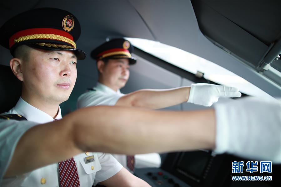 7月3日,擔(dān)任首發(fā)列車(chē)值乘工作的隨車(chē)機(jī)械師在貴陽(yáng)亮相。 新華社記者 劉續(xù) 攝