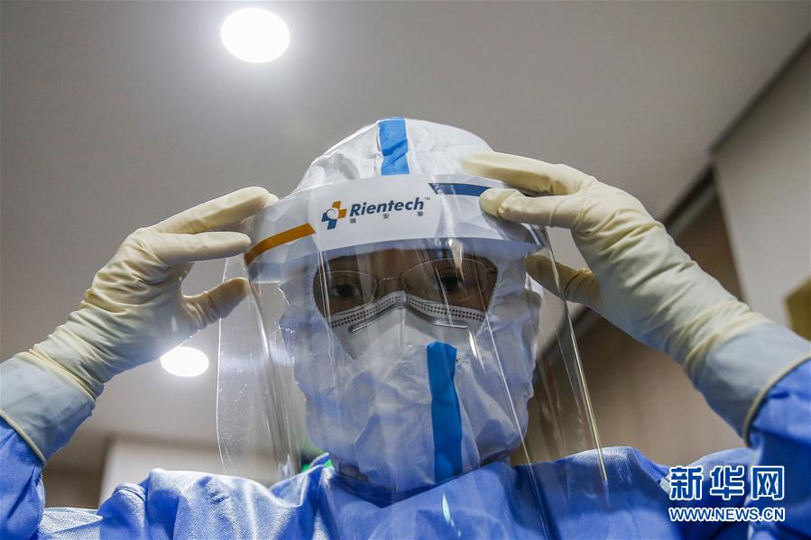 7月3日,中日友好醫(yī)院檢驗科新冠核酸檢測實驗室的檢驗人員閆克芹在進(jìn)入污染區(qū)前穿戴防護(hù)裝備。新華社記者張玉薇攝