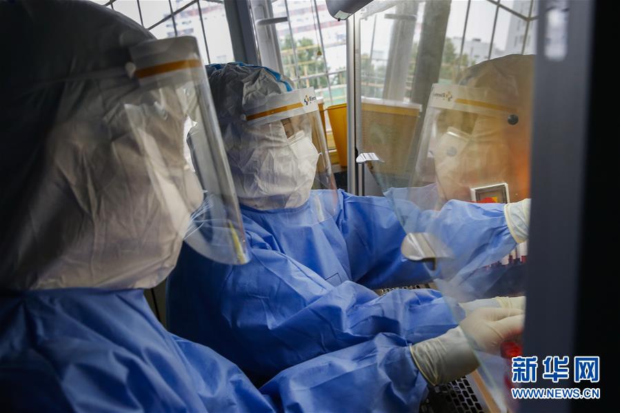 7月3日,中日友好醫(yī)院檢驗科新冠核酸檢測實驗室的檢驗人員閆克芹(右)和張鑫在實驗室內(nèi)處理剛剛送到的樣本。新華社記者張玉薇攝