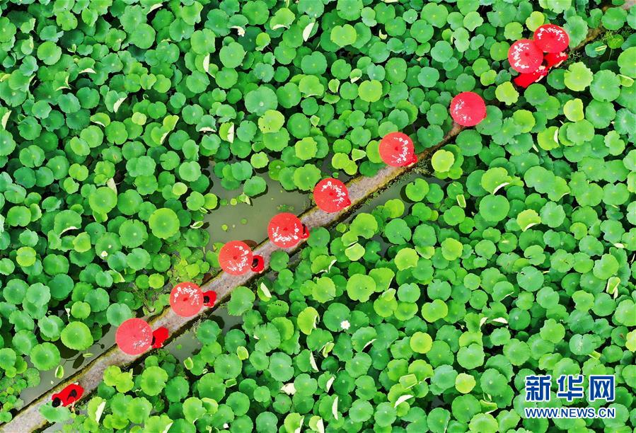 7月3日,游客在曲周縣勝豐蓮藕種植專業(yè)合作社荷塘景區(qū)游覽(無人機照片)。時值夏日,河北省曲周縣勝豐蓮藕種植專業(yè)合作社荷塘景區(qū)的荷花競相綻放,吸引眾多游人前來觀光游覽。新華社記者 王曉 攝