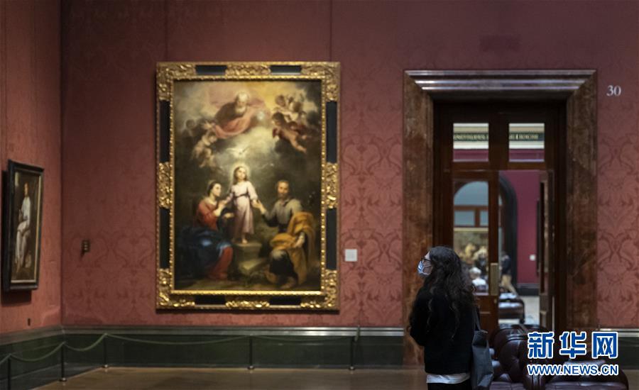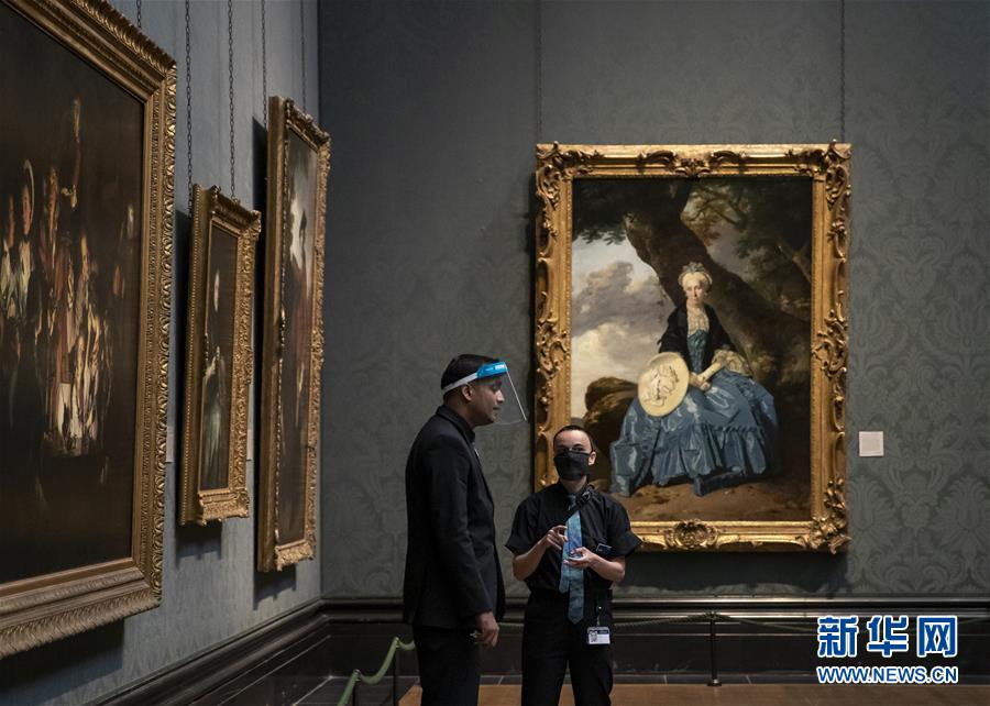 7月4日,參觀者佩戴口罩在英國(guó)國(guó)家美術(shù)館的媒體開(kāi)放日上參觀。新華社記者韓巖攝