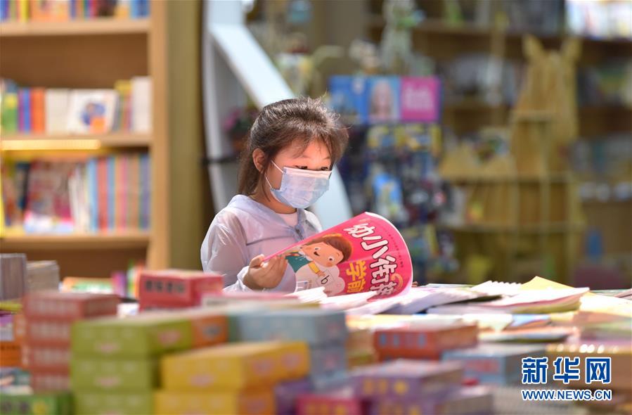 7月5日,一名小朋友在河北省定州市新華書店挑選圖書。近日,河北省定州市新華書店在做好疫情防控的前提下,開展“樂享圖書嘉年華”系列活動(dòng),通過舉辦圖書聯(lián)展、親子閱讀、少兒讀物推介等活動(dòng),吸引少年兒童走進(jìn)圖書館,感受書香陪伴的夏天。新華社記者朱旭東攝