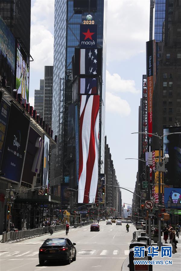7月4日,美國紐約時報廣場上的行人和車輛稀少。當(dāng)日是美國獨立日,美國多地疫情仍面臨嚴峻形勢。美國約翰斯·霍普金斯大學(xué)實時統(tǒng)計數(shù)據(jù)顯示,美國累計新冠確診病例4日已超過280萬例。新華社記者王迎攝