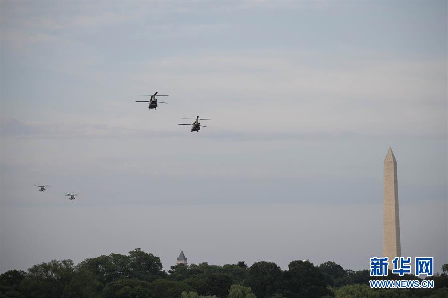7月4日,直升機在美國華盛頓上空進行飛行表演,慶祝美國獨立日。當日是美國獨立日,美國多地疫情仍面臨嚴峻形勢。美國約翰斯·霍普金斯大學實時統(tǒng)計數(shù)據(jù)顯示,美國累計新冠確診病例4日已超過280萬例。新華社記者劉杰攝