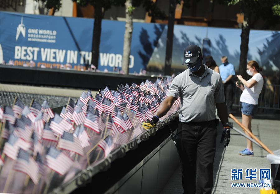 7月4日,工作人員在當(dāng)日重新開放的美國紐約“9·11”世貿(mào)中心遺址做清潔。當(dāng)日是美國獨(dú)立日,美國多地疫情仍面臨嚴(yán)峻形勢。美國約翰斯·霍普金斯大學(xué)實(shí)時統(tǒng)計數(shù)據(jù)顯示,美國累計新冠確診病例4日已超過280萬例。新華社記者王迎攝