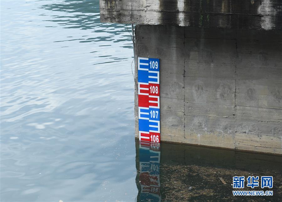 7月6日拍攝的新安江水庫的水位標(biāo)尺。受連續(xù)強降雨影響,位于浙江建德的新安江水庫水位持續(xù)上漲。據(jù)浙江省水利廳發(fā)布的數(shù)據(jù),截至7月6日14時,水庫水位上漲至106.54米,超汛限水位0.04米,且仍在上漲中。為確保水庫防洪安全、合理利用水資源,新安江水庫預(yù)計于7月7日開啟泄洪閘泄洪。新華社記者翁忻旸攝