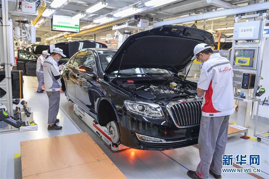 在位于長春市的一汽紅旗總裝車間,工人在裝配車輛(6月19日攝)。中國第一汽車集團(tuán)披露,截至6月30日,集團(tuán)上半年共計(jì)生產(chǎn)整車162.23萬輛,同比增長1.5%;銷售整車163.09萬輛,同比增長2.3%。新華社記者張楠攝