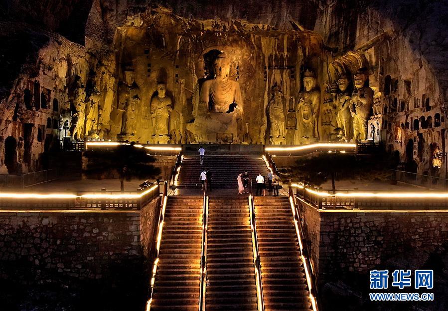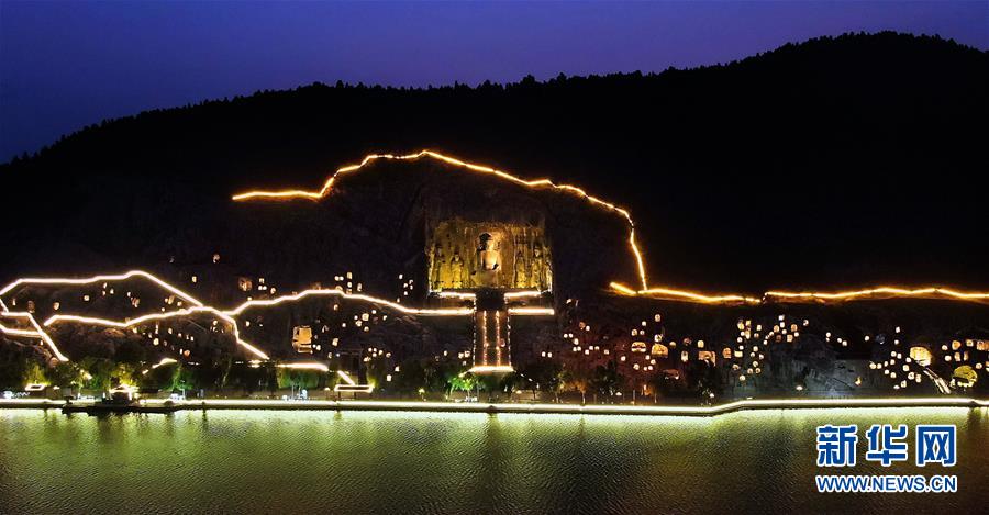 7月7日拍攝的洛陽(yáng)龍門(mén)石窟景區(qū)夜景(無(wú)人機(jī)照片)。近日,河南洛陽(yáng)的夜晚愈發(fā)繽紛多彩。立足于厚重的隋唐文化底蘊(yùn),洛陽(yáng)正通過(guò)創(chuàng)新夜游產(chǎn)品打響“古都夜八點(diǎn)”品牌,激活文旅消費(fèi)。新華社記者李安攝