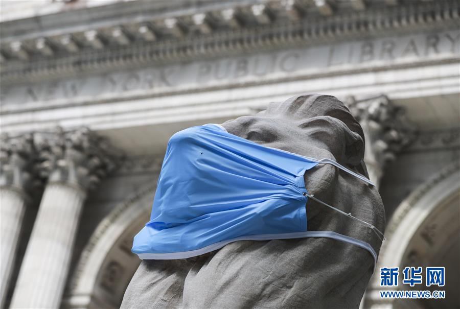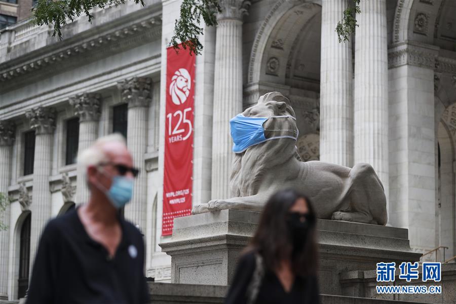 這是7月8日在美國紐約公共圖書館前拍攝的“戴”口罩的石獅子。美國約翰斯·霍普金斯大學(xué)8日發(fā)布的新冠疫情最新統(tǒng)計數(shù)據(jù)顯示,美國累計確診病例超過300萬例。數(shù)據(jù)顯示,截至美國東部時間8日11時34分(北京時間23時34分),美國累計確診病例3016515例,累計死亡病例131594例。新華社記者王迎攝