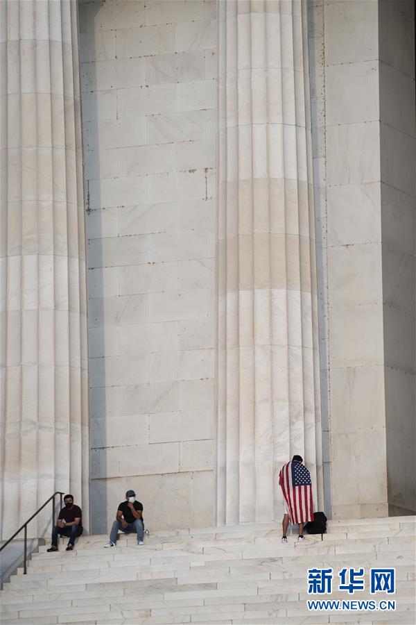 7月8日,在美國華盛頓,一名披著美國國旗的男子站在林肯紀(jì)念堂臺階上。美國約翰斯·霍普金斯大學(xué)8日發(fā)布的新冠疫情最新統(tǒng)計數(shù)據(jù)顯示,美國累計確診病例超過300萬例。數(shù)據(jù)顯示,截至美國東部時間8日11時34分(北京時間23時34分),美國累計確診病例3016515例,累計死亡病例131594例。新華社記者劉杰攝