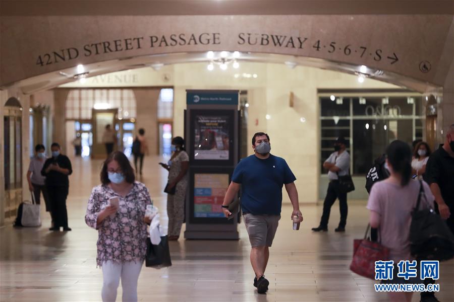 7月8日,人們在美國紐約中央車站內(nèi)等候乘車。美國約翰斯·霍普金斯大學(xué)8日發(fā)布的新冠疫情最新統(tǒng)計數(shù)據(jù)顯示,美國累計確診病例超過300萬例。數(shù)據(jù)顯示,截至美國東部時間8日11時34分(北京時間23時34分),美國累計確診病例3016515例,累計死亡病例131594例。新華社記者王迎攝