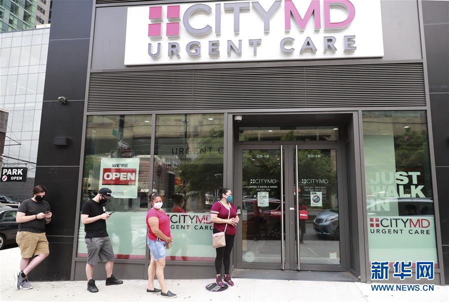7月8日,人們在美國紐約一家診所外排隊等候進行新冠病毒檢測。美國約翰斯·霍普金斯大學(xué)8日發(fā)布的新冠疫情最新統(tǒng)計數(shù)據(jù)顯示,美國累計確診病例超過300萬例。數(shù)據(jù)顯示,截至美國東部時間8日11時34分(北京時間23時34分),美國累計確診病例3016515例,累計死亡病例131594例。新華社記者王迎攝