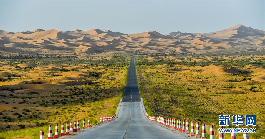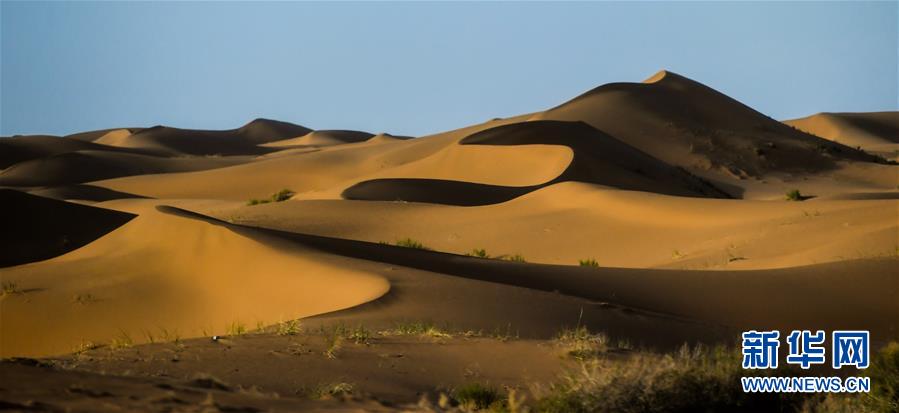 這是7月8日拍攝的騰格里沙漠風(fēng)光。位于內(nèi)蒙古自治區(qū)阿拉善左旗西南部和甘肅省中部邊境的騰格里沙漠是我國(guó)第四大沙漠,總面積約為4.3萬平方公里。夏日傍晚,騰格里沙漠連綿的沙丘被日光勾勒出美麗的線條,美不勝收。新華社記者連振攝
