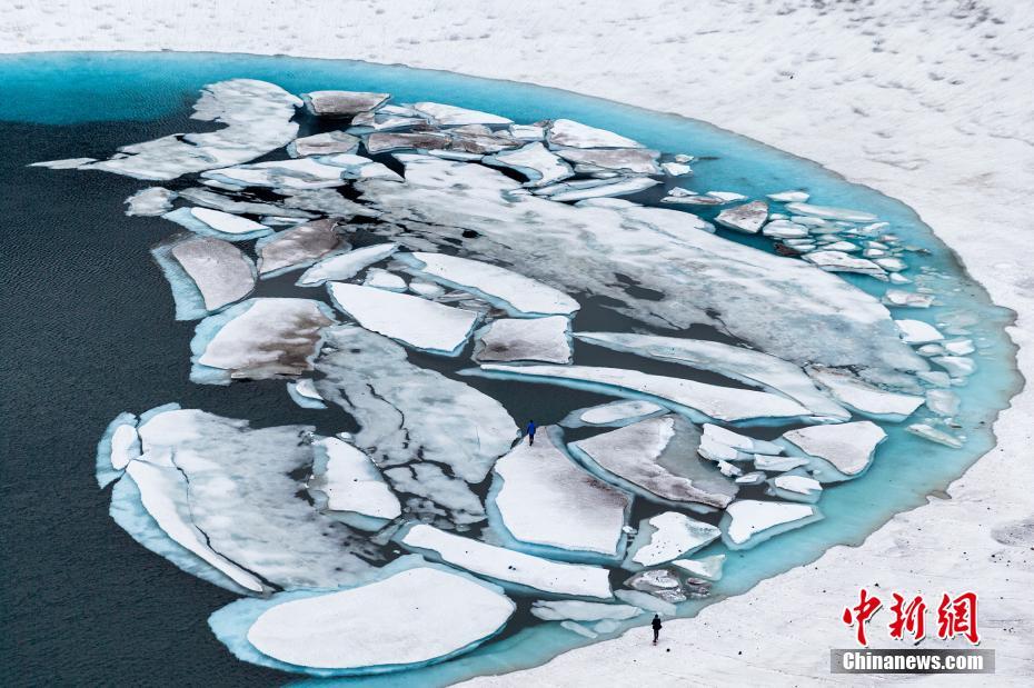 當(dāng)?shù)貢r間2020年7月7日,俄羅斯堪察加半島,Gorely火山附近的Sredinnoye火山湖。這個湖斷斷續(xù)續(xù)的,是6月底到8月初融雪形成的。圖片來源:視覺中國