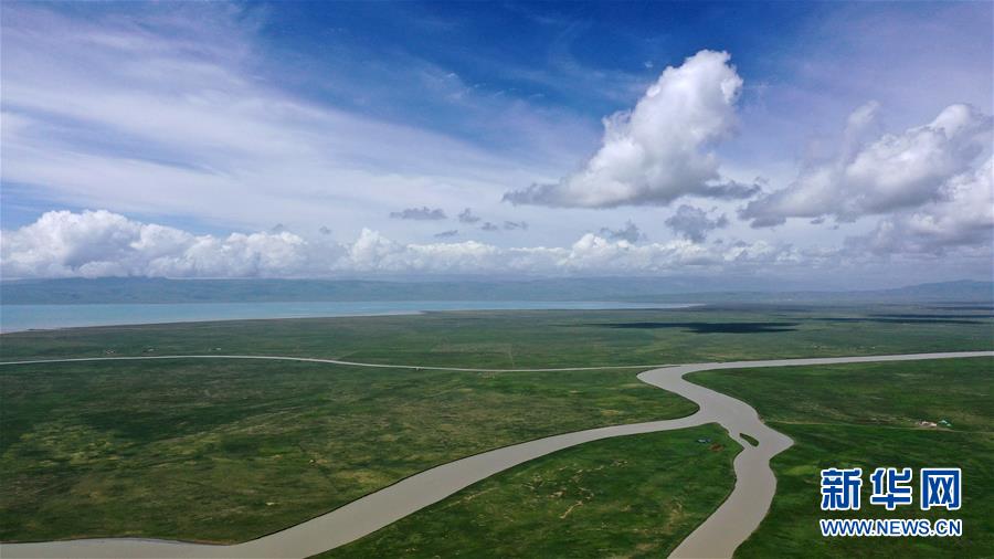 7月10日拍攝的青海湖風(fēng)光(無人機照片)。盛夏時節(jié),被譽為“中國最美湖泊”的青海湖畔景色宜人,藍天、白云、湖水與草原組成一幅壯美的畫卷。新華社記者 張宏祥 攝