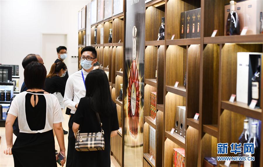 7月12日,游客在??谌赵聫V場免稅店選購酒類產(chǎn)品。新華社記者 楊冠宇 攝