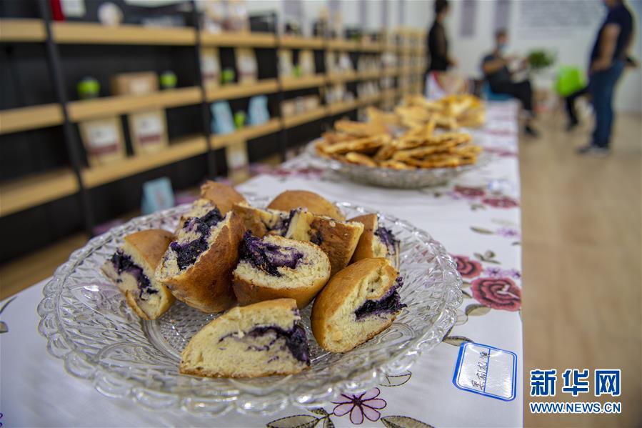 7月13日在新疆精河縣精河鎮(zhèn)馕文化產業(yè)示范基地拍攝的供顧客品嘗的“黑枸杞馕”。近日,新疆精河縣10萬余畝枸杞陸續(xù)成熟,當地農民搶抓農時,采收枸杞。近年來,精河縣持續(xù)發(fā)展和培育枸杞“紅色產業(yè)鏈”,加大資金扶持力度,提升精河枸杞的品牌效應,帶動農民增收致富。精河縣位于新疆天山山脈北麓,準噶爾盆地西南邊緣。當地日照時間長、晝夜溫差大且氣候干燥,有利于枸杞果實糖分和藥用成分積累。新華社記者 胡虎虎 攝