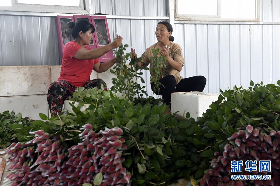 7月10日,莒縣招賢鎮(zhèn)西黃埠村盛世花卉種植專(zhuān)業(yè)合作社工人在包裝玫瑰花。山東省日照市莒縣招賢鎮(zhèn)有20余年的玫瑰花、扶郎花種植歷史。目前,招賢鎮(zhèn)投資建設(shè)的高標(biāo)準(zhǔn)特色鮮花種植大棚可年產(chǎn)700-800萬(wàn)枝優(yōu)質(zhì)玫瑰和扶郎花等,帶動(dòng)周邊鄉(xiāng)鎮(zhèn)的建檔立卡貧困戶脫貧增收。新華社記者 范長(zhǎng)國(guó) 攝