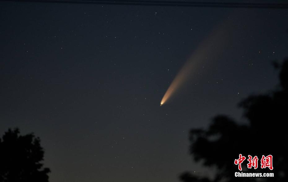 當(dāng)?shù)貢r(shí)間7月12日,德國薩克森州,當(dāng)?shù)匾箍罩锌捎^測(cè)到NEOWISE彗星。圖片來源:視覺中國