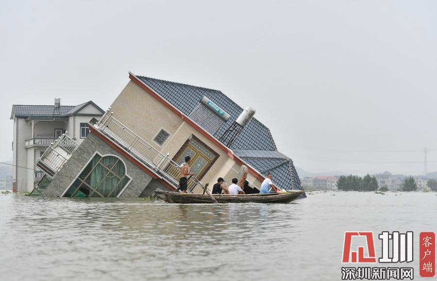 2020年7月15日,江西省鄱陽縣油墩街鎮(zhèn)同興村,村莊受到洪水圍困,大部分村民已經(jīng)被轉(zhuǎn)移出去,仍有少數(shù)村民選擇留守家中積極自救繼續(xù)生活。7月8日晚,鄱陽縣油墩街鎮(zhèn)西江因特大暴雨出現(xiàn)漫堤決口,5個行政村被洪水圍困,數(shù)萬名群眾被及時疏散轉(zhuǎn)移。同興村村民張瑤康回憶起了當(dāng)時的場景,“水一下子就涌進(jìn)來,等緩過神來趕緊向二樓轉(zhuǎn)移一樓的物品。洪水來時只從一樓搶到了一些輕便易拿的東西,冰箱、洗衣機(jī)之類的大物件,至今仍浸泡在一樓水中。”15日,記者跟隨張瑤康乘船回家,抵達(dá)后看到,一樓淹沒在水中,一個綁在二樓護(hù)欄的木梯成為進(jìn)出“家門”的唯一通道。“每天劃船去村里運送水和食物,家里有煤氣罐和灶臺。因為80多歲的老母親行動不便,我們選擇留守家中。”“雖然對岸就有安置點,但還是更愿待在自己家里,一來是不愿意給政府添麻煩,二來能每天看著自己的房子心里踏實?!蓖d村村民張長來夫婦帶著剛剛領(lǐng)到的大米、方便面、飲用水乘船回到家中。記者在現(xiàn)場看到,隨著各方救援力量和物資的匯聚,被洪水圍困的村民生活雖有不便,但生活仍在繼續(xù)?!胺孔硬坏梗揖驮?,我們要積極面對,早日重建家園?!睆埇幙蹈嬖V記者。