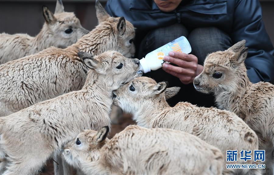 7月7日,三江源國家公園管理局長江源園區(qū)可可西里管理處卓乃湖保護(hù)站的工作人員才文多杰在給藏羚羊幼仔喂奶。新華社記者薛玉斌攝