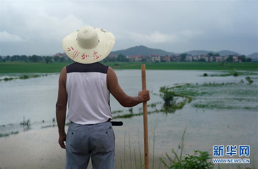7月9日,邵忠如在圩堤上觀察水情,不遠(yuǎn)處就是他的村子。邵忠如是江西省樂平市樂港鎮(zhèn)邵灣村黨支部書記,今年56歲,負(fù)責(zé)中洲圩中一段700多米長的圩堤的巡堤守堤工作。身前是洪水,身后是村子和稻田,老邵不敢有半點疏忽。6天6夜,老邵和村民們不間斷地值守在圩堤上,一天4個班,一班6人,每半小時巡堤一次,發(fā)現(xiàn)險情立即處置。作為村支書,老邵更是幾乎全天都在圩堤上,實在困了才會睡一會兒。新華社記者萬象攝