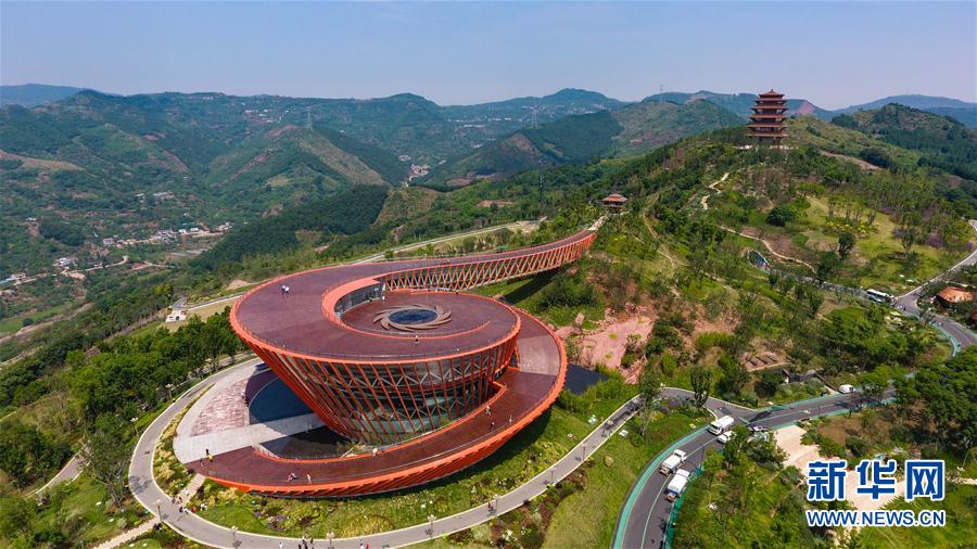 這是6月15日拍攝的四川省成都市龍泉山城市森林公園丹景山觀景臺(無人機照片)。新華社記者王曦攝